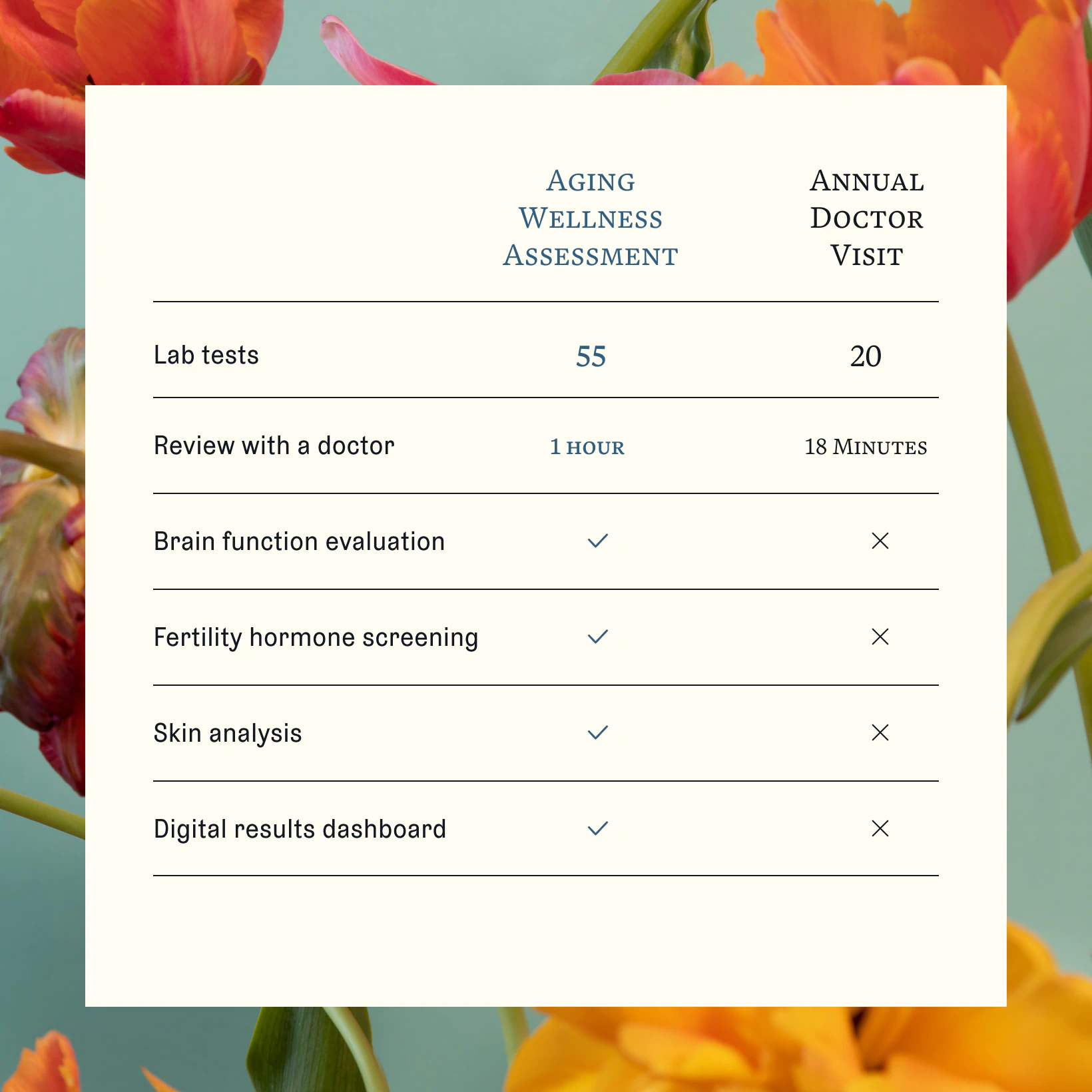 The age you feel is called subjective age — and research shows lowering it can lead to a longer, healthier life. Our Aging Wellness Assessment helps you understand the root cause of aging and sets you on a path to take control.